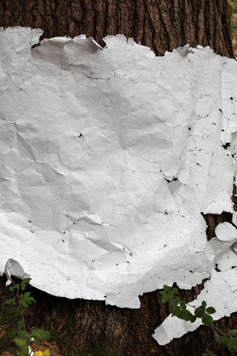 To complete a process cycle, the carefully preserved pulp from previous cycles of sculptural making is made into sheets that the artist calls “remnant papers” and returned to a codex form. However, works might also be paused from the process to be exhibited or to continue life in the form of a photograph.