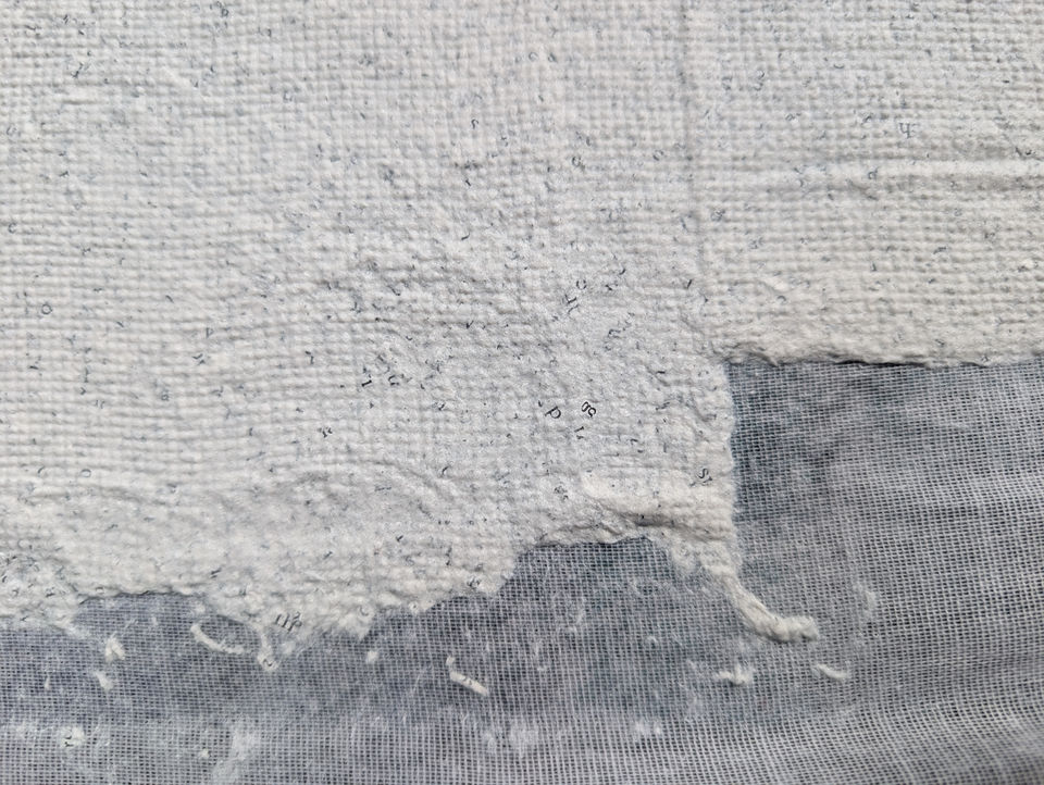 In each sculptural iteration, the material text takes on a different form. Working with guests invited to the studio, gestures, stories, thoughts, and conversations, all become integral parts of the transitional works.