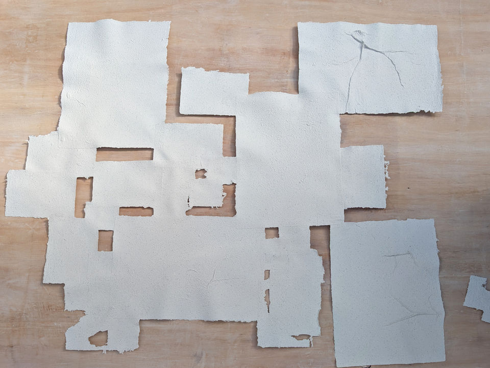 Below, I have included some photographs of some of the The New English Bible's transitional sculptures, as well as a documentation of some of the process cycles. Some process cycles, especially those involving studio visitors, consisted simply of making paper and most remained undocumented. I have included some exemplary photographs for these sessions to convey the rhythm of making.